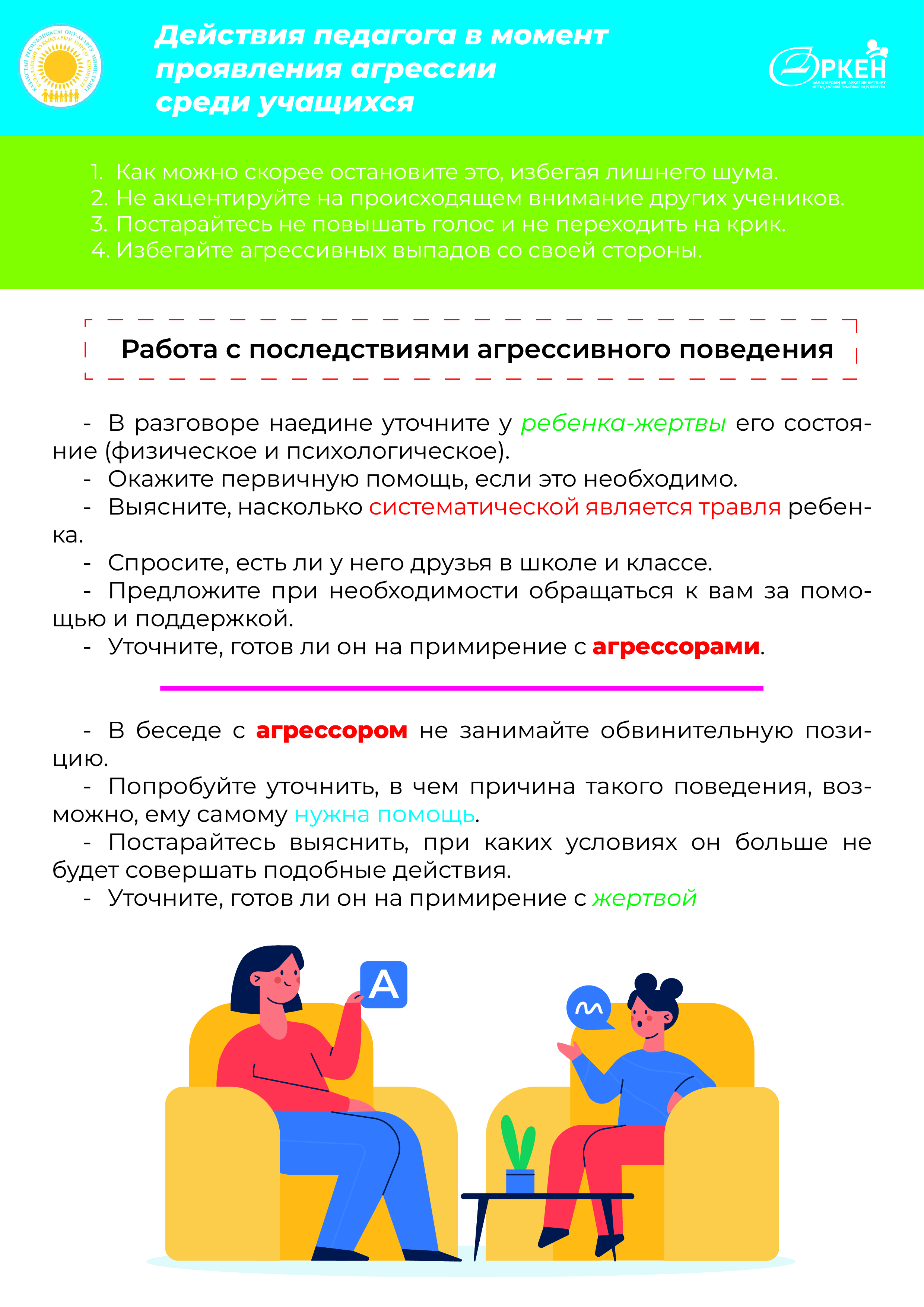 Если вы стали свидетелем агрессии или столкнулись с ней лично, важно не игнорировать ситуацию. Обсудите проблему с учителями, родителями или школьным психологом. Вместе мы сможем сделать школу более дружелюбной и безопасной для всех.