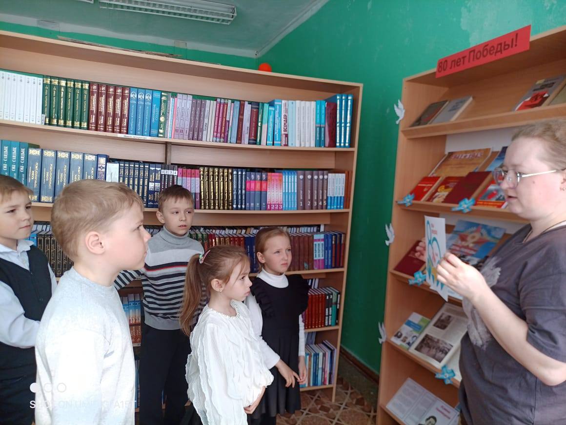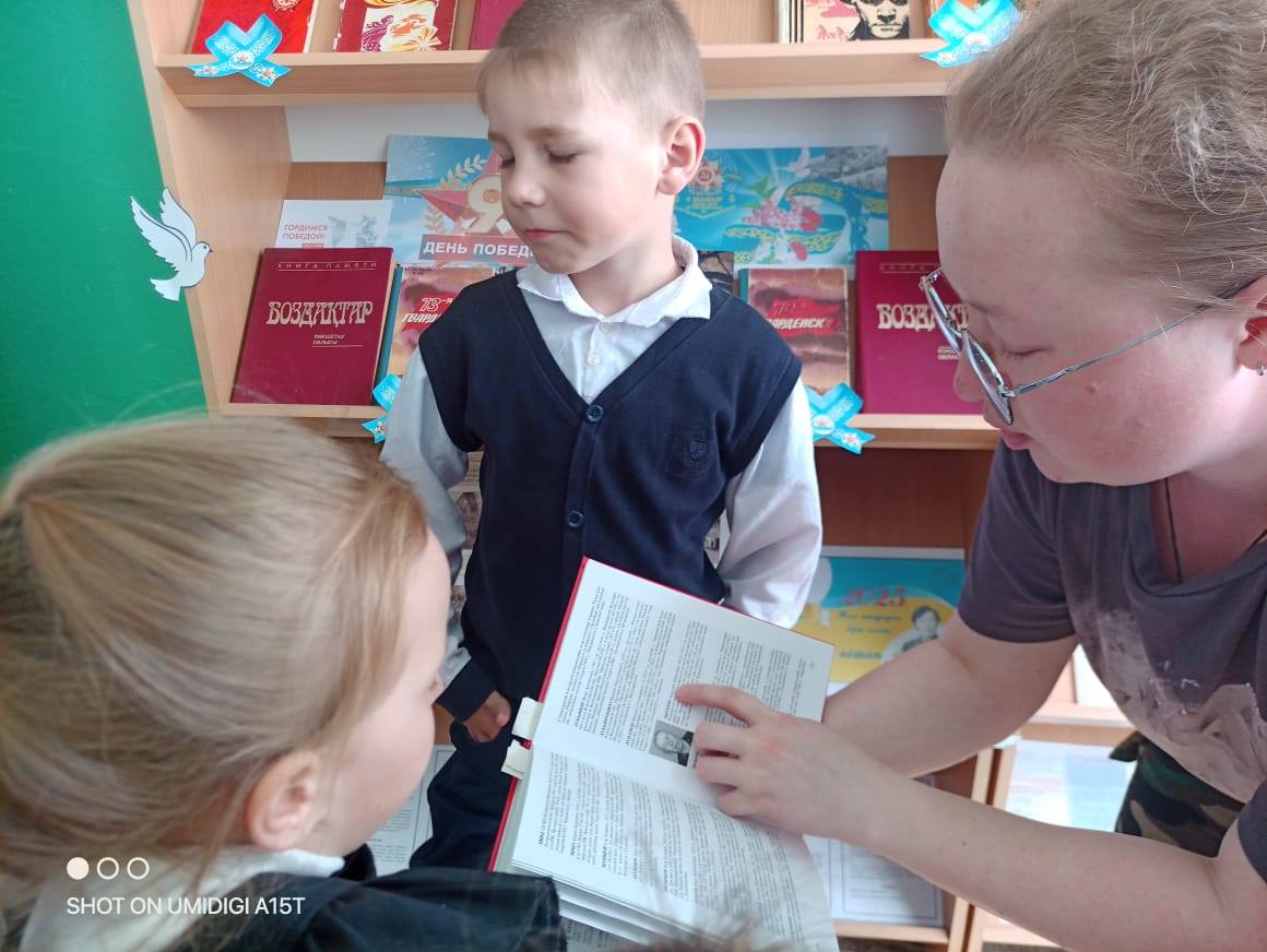 Мероприятие началось с небольшого рассказа, в ходе которого дети узнали о значении праздника, о том, кто такие герои войны и каким трудным было их участие в обороне страны. Детям показали тематическую выставку к празднику, показали эмблему празднования юбилея победы, дети выбрали на выставке книгу рассказывающую о героических поступках солдат и граждан и вместе с библиотекарем просмотрели её. Затем ребята приняли участие в обсуждении значимых слов и символов, связанных с праздником.