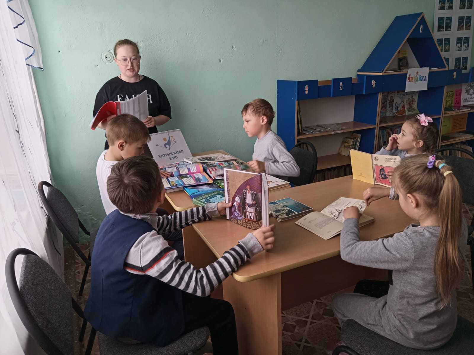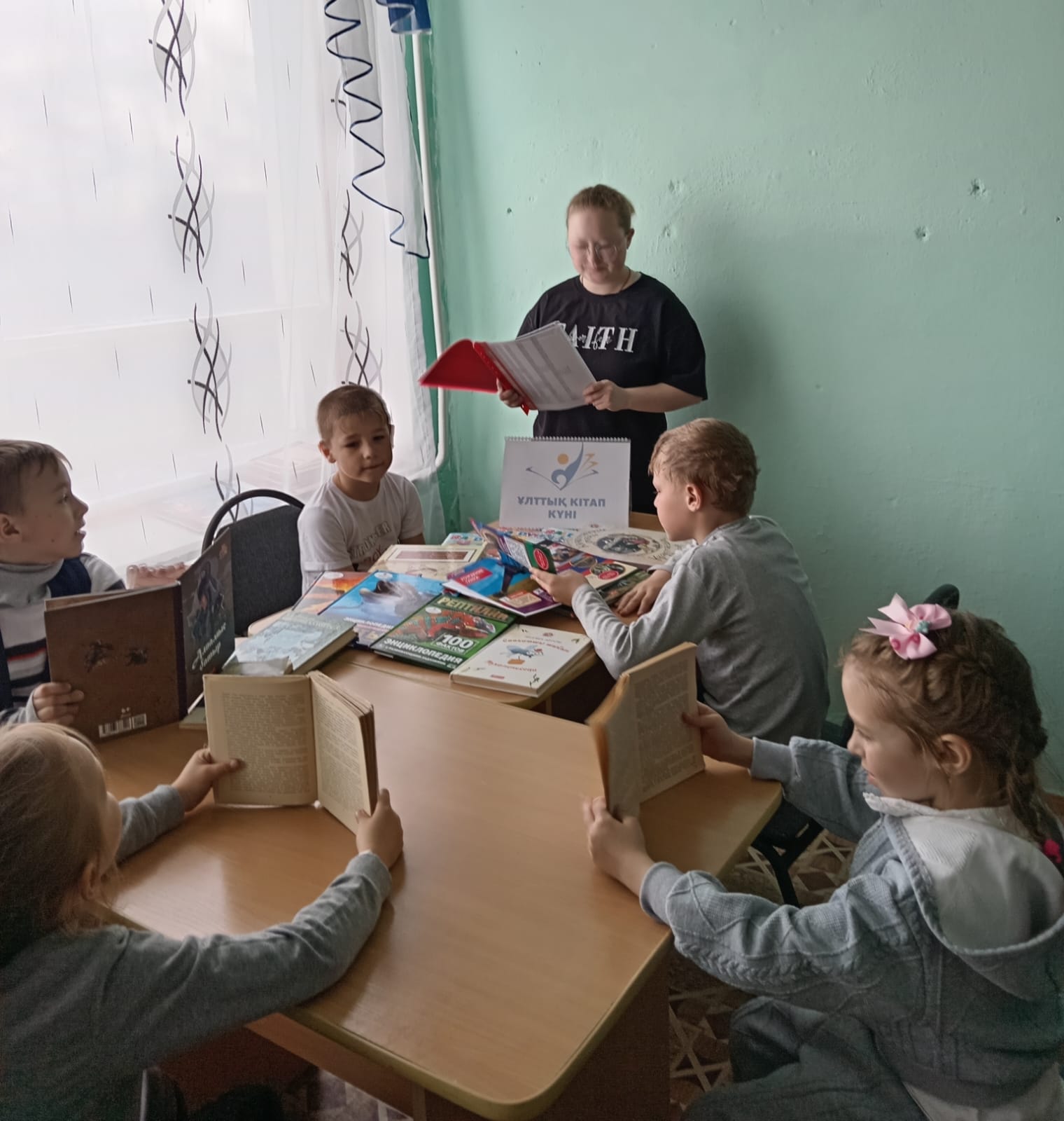 Сегодня прошло мероприятие с начальными классами "Мы встречаем новый Праздник". Постановлением Правительства в Казахстане учрежден новый праздник - 23 апреля «Национальный день книги». Эта новая праздничная дата появилась в связи с поручением Главы государства, данным на основной сессии третьего Национального курултая в целях формирования в обществе высокой культуры чтения. В связи в этой датой для детей был проведён час познавательного чтения, в начале рассказали ребятам о появлении нового официального Праздника в нашей стране. И о том на сколько он нужен и важен в первую очередь для молодёжи и для будущего всего нашего государства. Ребята с интересом послушали, и задали свои вопросы. После дети выбрали по книге из тех что для них приготовили, и немного почитали в слух друг для друга.